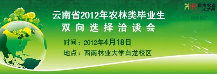 為貫徹落實(shí)教育部2012年普通高等學(xué)校畢業(yè)生就業(yè)工作會議精神,切實(shí)做好2012年云南生農(nóng)林類畢業(yè)生的就業(yè)工作,為用人單位和廣大畢業(yè)生提供一個(gè)交流、溝通、雙向選擇的平臺,促進(jìn)我省農(nóng)林類畢業(yè)生能夠充分就業(yè)。經(jīng)云南省教育廳研究,擬定于2012年4月18日在西南林業(yè)大學(xué)召開“云南省2012年農(nóng)林類畢業(yè)生和畢業(yè)研究生雙向選擇洽談會”,現(xiàn)就有關(guān)事項(xiàng)通知如下: